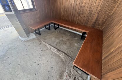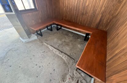 木製ベンチの製作と腰壁の張り替え